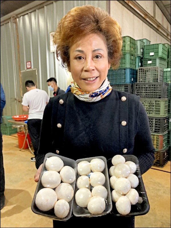 黑貓姐李美玲中年改種洋菇,種出一片天。(記者顏宏駿攝)