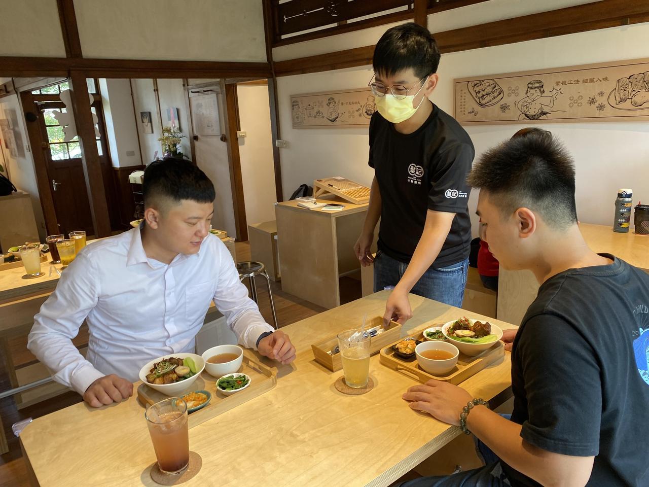 冰糖醬鴨從眷村起家,黎記冰糖醬鴨第三代黎承諭(中)接手後,將老店帶回眷村,提供內...