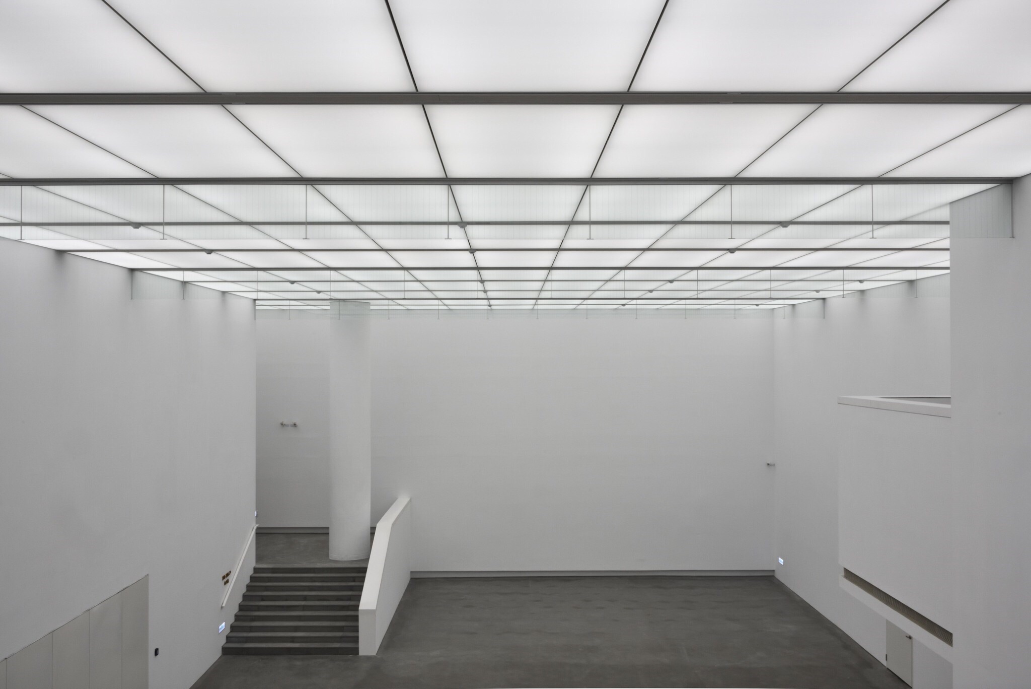 對室內光線設計,館長也為我們介紹了其中巧思:「不僅透過戶外自然光呈現光感,更結合了高科技,由玻璃纖維製成的光膜所打造出的天花光線非常自然,這些燈光皆為環保的LED燈。而地坪的部分為無縫強化水泥,與當代場域相當合適。」